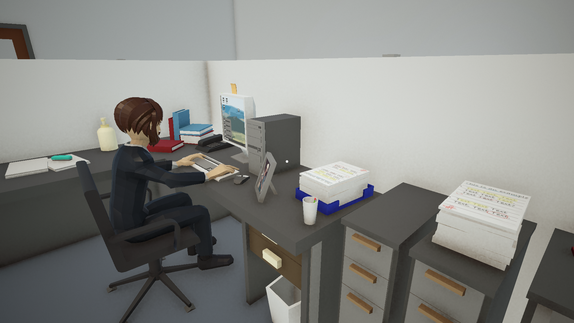 mundane office. No guns. No guards with radars. Just you,